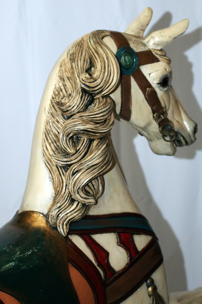 Dies ist das größere Karusell-Pferd: es ist von der Abmessung nicht viel höher und länger als das kleinere, doch steht es im Gegensatz zum kleinen mit den Hinterläufen direkt auf dem Boden, hat mehr Körper mit fast dem doppelten Volumen (und Gewicht) des kleineren.