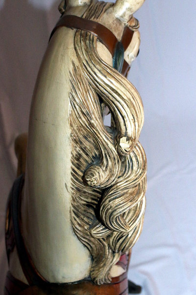 Sorgfältig restauriertes Karussellpferd, aus Voll-Lindenholz geschnitzt.